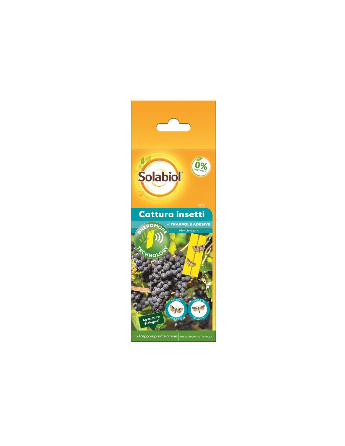 La trappola adesiva Cattura insetti è l’innovativa soluzione naturale per la cattura ed il controllo della tignola della vite (Eupoecilia ambiguella) e della tignoletta della vite (Lobesia botrana). La trappola, oltre ad attirare naturalmente gli insetti grazie al suo colore giallo, contiene anche i 2 feromoni di attrazione specifici per gli insetti bersaglio che vengono quindi attirati e catturati nel foglio adesivo. La trappola è resistente alla pioggia e agli altri agenti atmosferici, garantendo fino a un mese di efficacia.