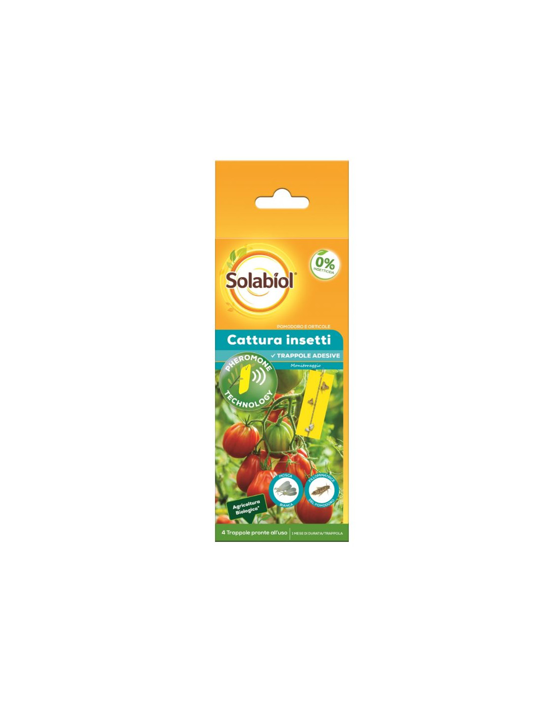 La trappola adesiva Cattura Insetti è l'innovativa soluzione naturale per la cattura ed il monitoraggio della fillominatrice del pomodoro (Tuta absoluta) e della mosca bianca (Trialeurodes vaporiarum). La trappola, oltre a richiamare naturalmente gli insetti grazie al suo colore giallo, contiene anche i 2 feromoni di attrazione specifici per gli insetti bersaglio che vengono quindi attirati e catturati nel foglio adesivo. La trappola è resistente alla pioggia e agli altri agenti atmosferici, garantendo fino a un mese di efficacia.