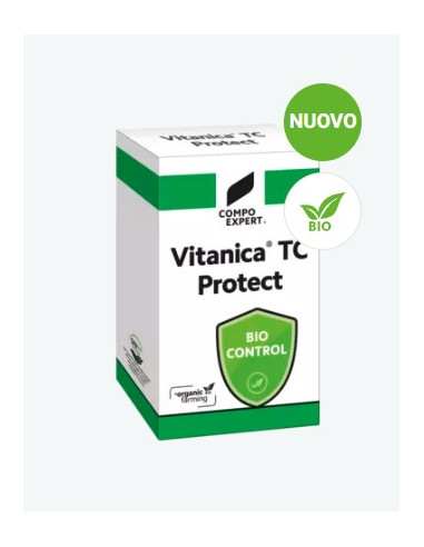 Vitanica® TC Protect è un agrofarmaco biologico che contiene conidiospore durevoli di ceppi naturali selezionati dei funghi antagonisti Trichoderama asperellum e Trichoderma gamsii. Vitanica® TC Protect agisce in maniera preventiva nei confronti di numerosi patogeni terricoli ma non solo (es: Mal dell’Esca su Vite). La presenza di due ceppi diff erenti nella formulazione di Vitanica® TC Protect riduce i rischi di cali di efficacia nel caso di mutate condizioni ambientali che possono colpire un ceppo. Il doppio ceppo è quindi una ulteriore garanzia di attività del prodotto.