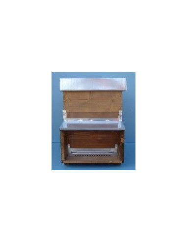 Arnia con fondo mobile antivarroa completa di fondo, nido, melario, telaini infilati del nido e del melario, coprifavo, coperchio in lamiera e cera sui telaini.