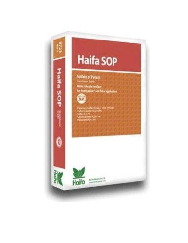 Haifa SOP G.G. è solfato potassico (0-0-51+43 SO3) idrosolubile in forma cristallina. Haifa SOP G.G. è indicato per le fasi finali del ciclo colturale, inoltre ha un effetto acidificante sulla soluzione nutritiva.