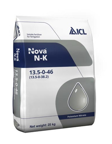 Nova N-K fornisce una nutrizione N:K bilanciata di 13:46, che lo rende ideale per colture con alta richiesta di potassio. Nova N-K contiene azoto in forma nitrica che è facilmente assimilabile dalla pianta. Grazie all'effetto sinergico tra NO3 - e K2O, le piante possono raggiungere alti livelli di assorbimento di entrambi gli elementi.