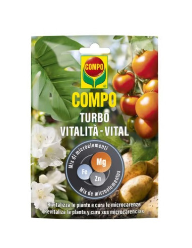 COMPO Turbo Vitalità contiene microelementi in forma chelata, solubili in acqua, di immediata efficacia e con effetto rivitalizzante.