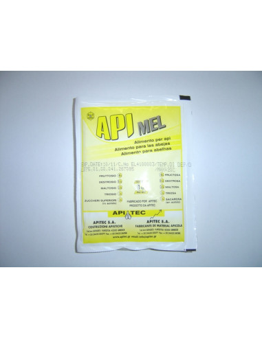Candito per alimentazione famiglie in confezioni monodose di circa 1 kg. API-MEL - CANDITO PER API - Alimentazione API-MEL è un alimento già pronto per le api. Composizione: Fruttosio 42,0%; Destrosio 51,5%; Maltosio 2,5%; Trioso 2,0%; Altri zuccheri 2,0%. Conservazione: condizioni di stoccaggio consigliate: Temperatura: 20 ± 5 º C. Non sono stati utilizzate materie prime OGM per la produzione di APIMEL “BEE FEED APIMEL E 'OGM-FREE”