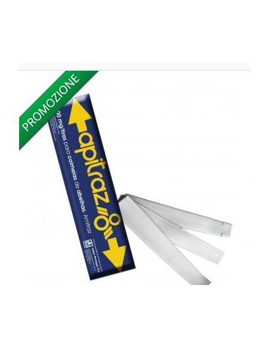 IL principio attivo è l'amitraz. La confezione e composta da 10 strisce, sufficiente al trattamento di 5 famiglie su 10/12 tel. (2 strisce a famiglia) oppure per 10 sciami da 5/6 tel. (1 striscia cadauno).