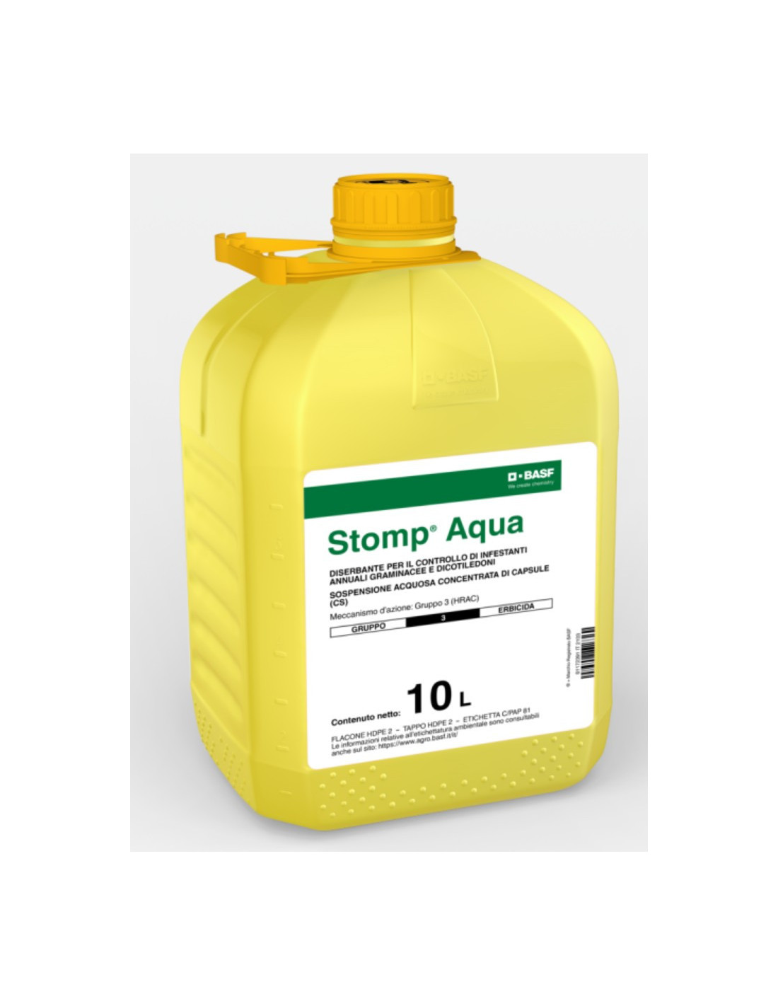 Caratteristiche Stomp Aqua esplica in maniera eccellente la propria attività diserbante. Si dimostra selettivo verso le colture trattate e perfettamente in grado di inibire germinazione dei semi e sviluppo dei germinelli delle più importanti infestanti annuali sia graminacee, sia dicotiledoni. Stomp Aqua controlla le infestanti anche nello stadio di plantula, purchè le graminacee non abbiano superato lo stadio di 1-1,5 foglie e le dicotiledoni lo stadio di 2-3 foglie vere.