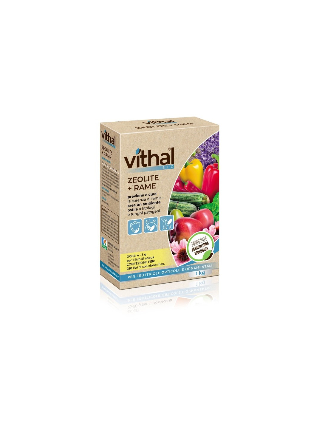 Vithal Zeolite + Rame PFnPE è un concime a base si ossicloruro di rame e manganese basato su microparticelle inorganiche che consentono una copertura uniforme delle piante trattate, ottima resistenza al dilavamento e un rilascio graduale ed efficiente di questi microelementi nel tempo.
