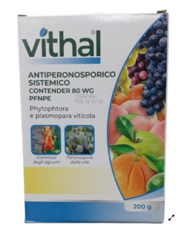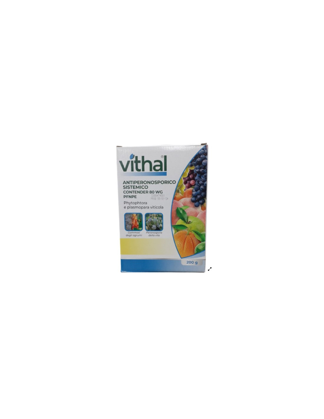 VITHAL ANTIPERONOSPORICO SISTEMICO CONTENDER 80 WG PFnPE Fungicida sistemico per piante destinate al consumo alimentare. Prodotto fitosanitario destinato agli utilizzatori non professionali. COMPOSIZIONE Fosetil Alluminio puro g. 80 Coformulanti q.b. a g. 100.