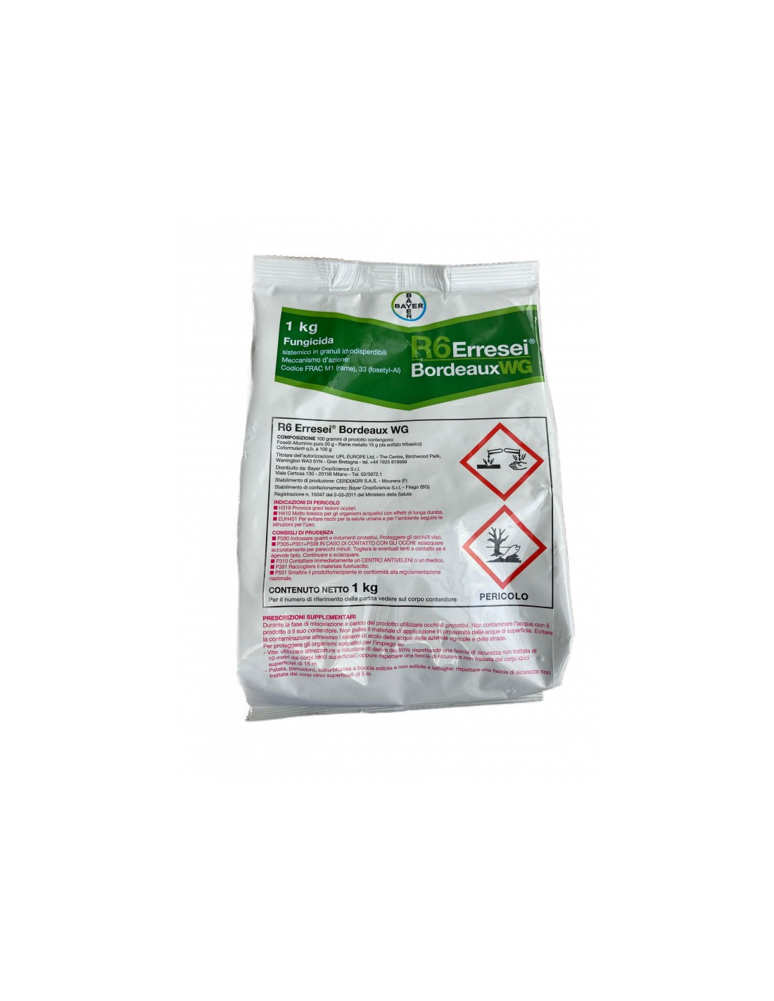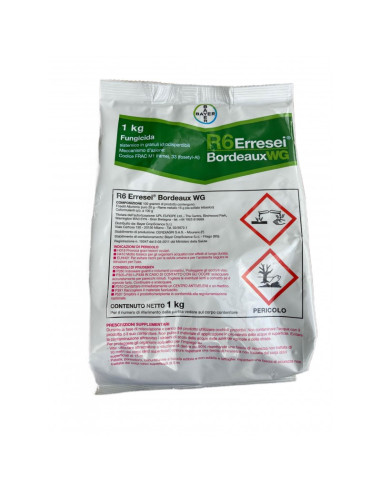 R6 Erresei Bordeaux WG consente intervalli d'intervento più ampi rispetto agli antiperonosporici tradizionali e manifesta una spiccata capacità di contenimento delle batteriosi. Le eccellenti proprietà legate alla nuova formulazione WG conferiscono ad R6 Erresei Bordeaux WG un elevato grado di selettività sulle colture ed una perfetta disperdibilità e sospensibilità in botte. Su vite, il prodotto si caratterizza anche per l’eccellente protezione della nuova vegetazione e delle femminelle. Inoltre, la spiccata sinergia fra i principi attivi conferisce al prodotto un’azione antisporulante su macchie d'olio.