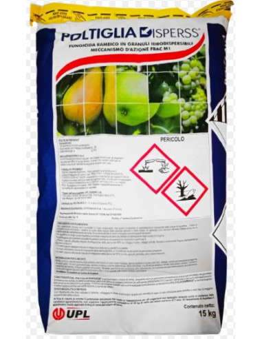 POLTIGLIA DISPERSS® è un formulato a base di rame, preparato con un particolare procedimento industriale brevettato che garantisce la presenza del solfato di rame solamente nella sua forma di cristallizzazione più efficiente (BROCHANTITE), mentre i sali di calcio derivanti dalla reazione sono esclusivamente sotto forma di gesso. Il contenuto in rame metallo attivo e la speciale formulazione conferiscono a POLTIGLIA DISPERSS® un’azione fungicida e batteriostatica anche con ridotti apporti di rame per ettaro.