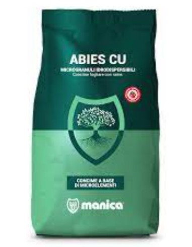 Abies Cu è un concime a base di rame complessato con acido lignosolfonico. Questa formulazione è particolarmente attiva nel curare rapidamente o prevenire le carenze di rame, elemento fondamentale per la respirazione cellulare.