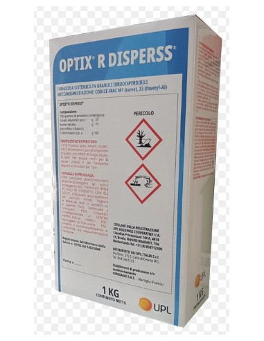 OPTIX R DISPERSS e una miscela fungicida che coniuga la spiccata attivita sistemica del fosetil alluminio con l¡¦azione multisito e a largo spettro del rame da solfato tribasico.