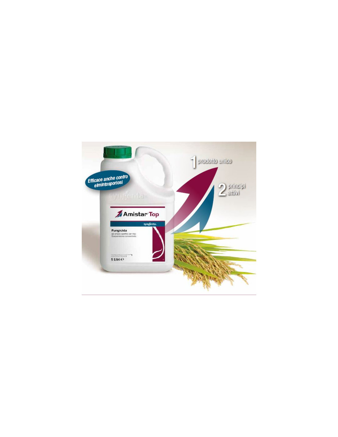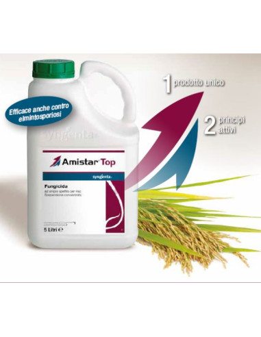 AMISTAR TOP è un fungicida in formulazione liquida composto dalla miscela di Difenoconazolo, fungicida triazolico, e di Azoxystrobin, sostanza attiva appartenente alla famiglia delle strobilurine. Su riso può avere effetti positivi sulla qualità e quantità della produzione.
