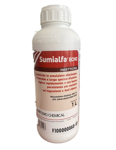 Sumialfa echo è un insetticida piretroide a base di esfenvalerate. Agisce per contatto ed ingestione su un’ampia gamma di insetti ad apparato boccale pungente-succhiatore e masticatore. Il prodotto dispone di spiccata attività abbattente e buona persistenza. E' formulato in emulsione olio/acqua.
