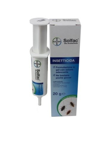 Solfac Gel Scarafaggi è un’esca particolarmente appetibile e attrattiva per tutti i tipi di scarafaggi e il suo effetto, sebbene non visibile, insorge qualche ora dopo l’ingestione da parte di questi insetti. Le gocce di Solfac Gel Scarafaggi sono particolarmente efficaci quando applicate in vicinanza o all’interno di fessure, nei luoghi nascosti, negli angoli e in generale nei siti dove si nascondono gli scarafaggi. Il prodotto ha odore e colore neutri e mostra un’eccezionale aderenza sulle superfici consentendone l’impiego in punti difficili. Il trattamento con Solfac Gel Scarafaggi non richiede particolari preparativi preliminari, pertanto le normali attività lavorative possono proseguire durante l’applicazione e non necessita che le persone si allontanino dall’area interessata durante e dopo il trattamento.