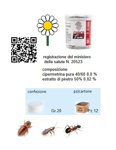 CYPERFUM® Insetticida fumogeno a base di cipermetrina ed estratto di piretro con un’elevata azione abbattente e snidante. registrazione del ministero della salute N. 20523 composizione: cipermetrina pura 40/60 8,0 % estratto di piretro 50% 0,02 %