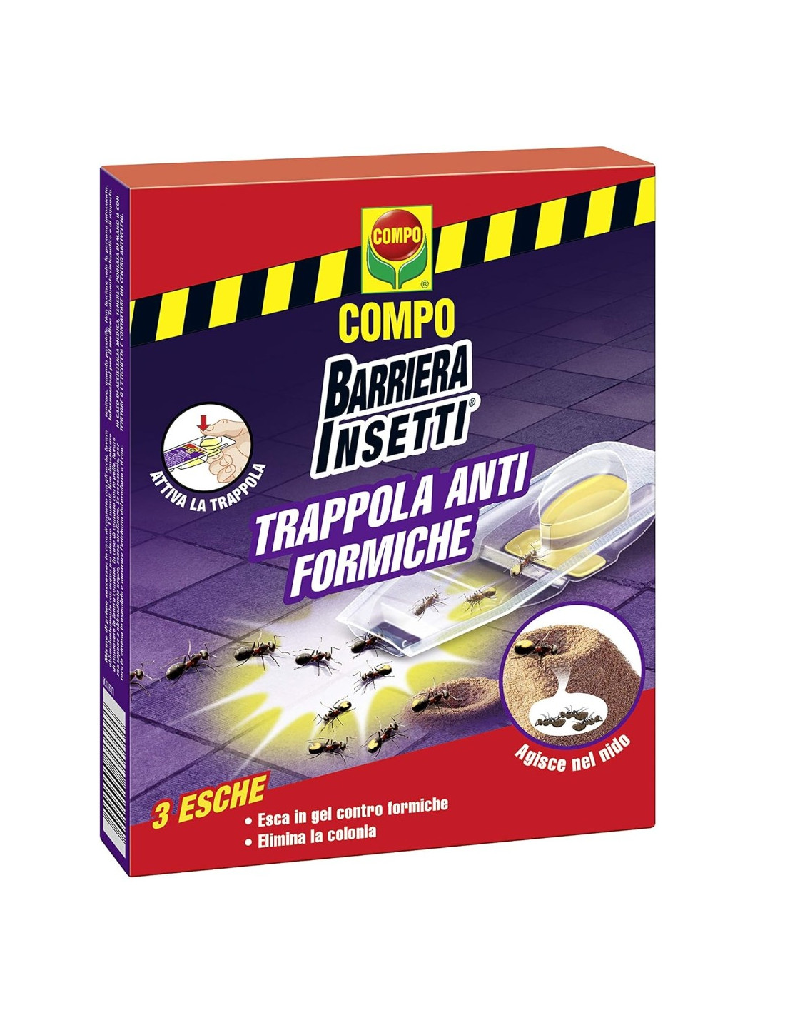 - Contenuto: 1 Confezione contenente una trappola Anti Formiche COMPO Barriera, Esche in gel, 3 Pezzi, Art. n. 2007002005