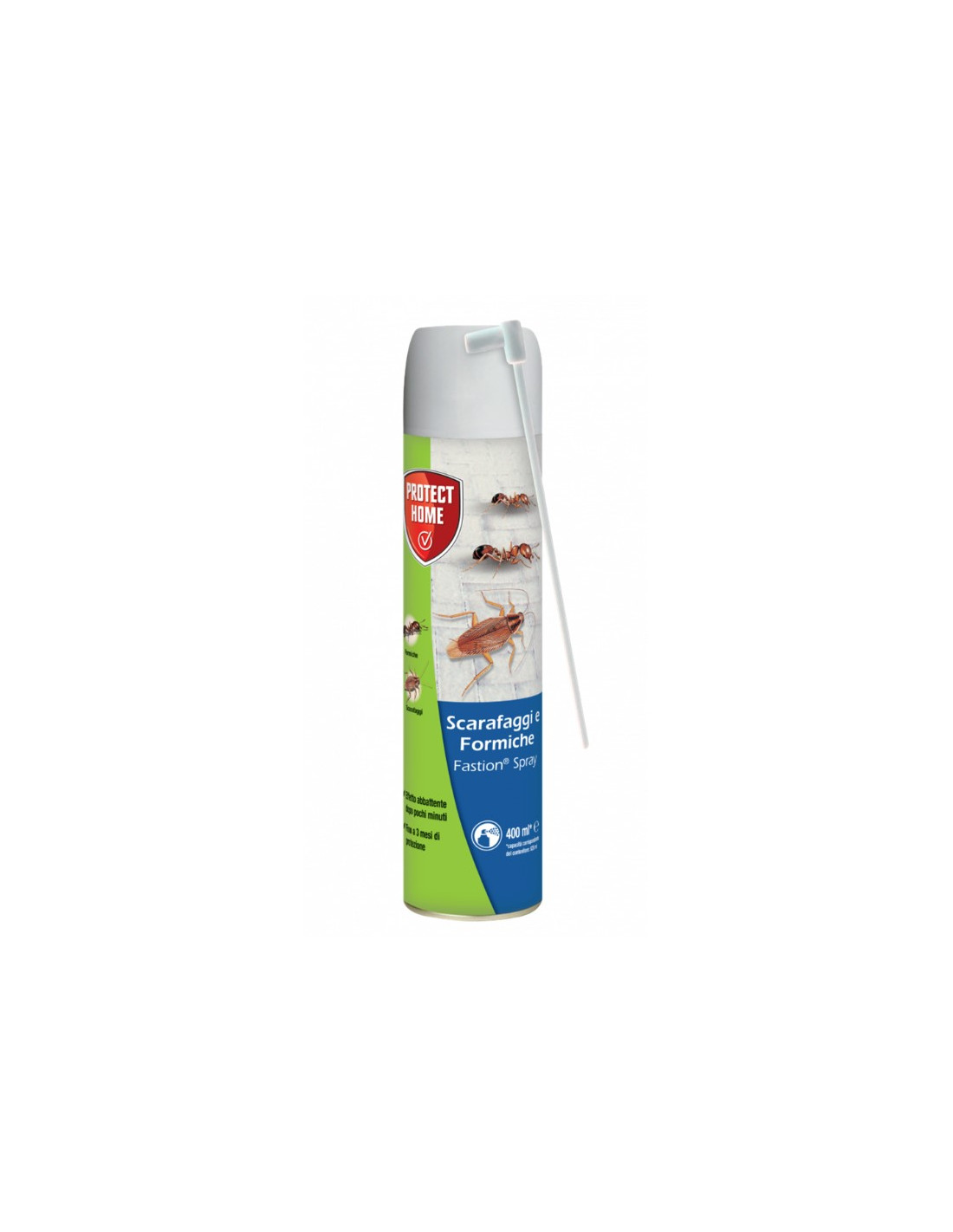 FASTION® SPRAY Scarafaggi & formiche, grazie all’azione rapida e residuale della deltametrina, offre un effetto abbattente immediato e una lunga durata d’azione. La bomboletta aerosol dispone di una cannuccia che facilita i trattamenti localizzati, necessari contro questo genere d’insetti che si rifugiano in nascondigli come crepe o zone nascoste. L’applicazione di FASTION® SPRAY Scarafaggi & formiche protegge l’ambiente trattato per circa 3 mesi.