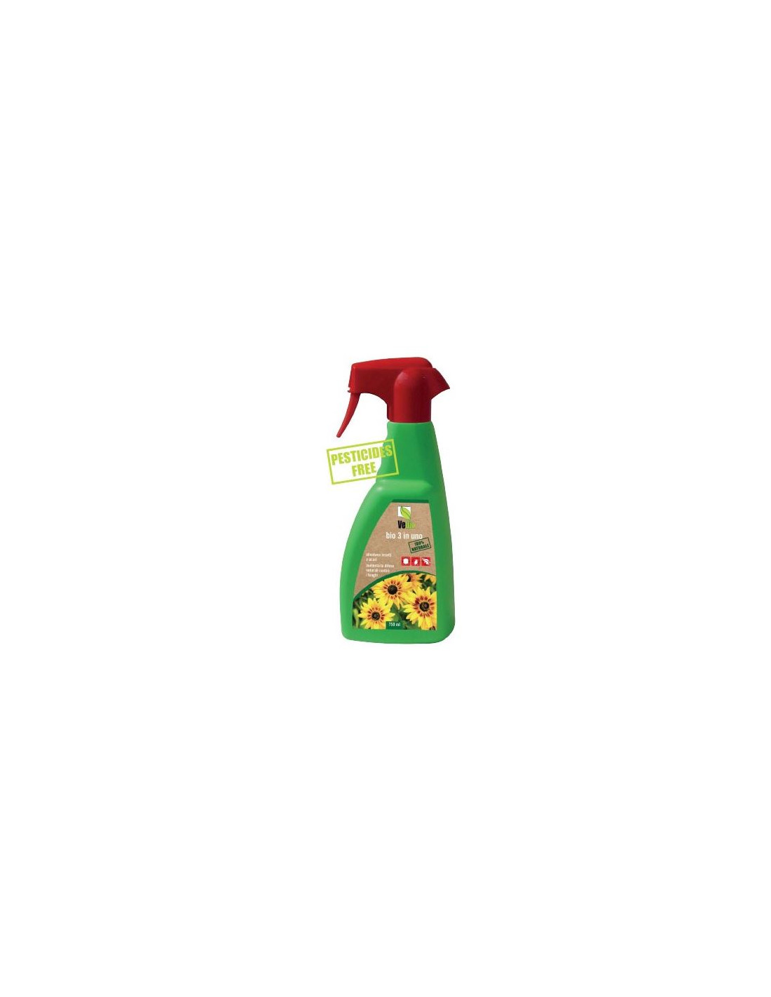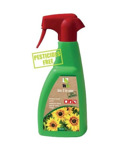 Bio 3 in uno è una miscela di estratti vegetali, fenoli e antiossidanti naturali che potenzia le difese immunitarie della pianta contro gli attacchi di acari, insetti e funghi. Crea un ambiente sfavorevole alla vita di acari, afidi ed insetti dannosi con una persistenza d’azione dagli 8 ai 10 giorni. Bio 3 in uno è una prodotto unico per composizione e completo per tripla azione.
