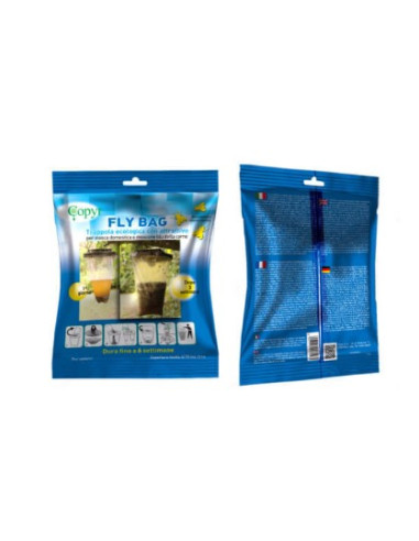 FLY BAG è un sistema facile ed ecologico (privo di insetticidi) per il monitoraggio delle mosche. Le mosche sono invitate ad entrare nella trappola e una volta entrate non hanno possibilità di uscita. Quando si attiva il monitoraggio? Il monitoraggio è attivo quasi da subito secondo istruzioni di seguito riportate; se il ritrovamento della mosche all'interno della trappola risulta elevato, si rende necessario porre ulteriori interventi di Integrated Pest Management.
