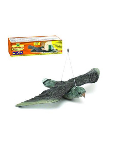 spaventa ed allontana i volatili nocivi quali piccioni, storni, passeracei ma anche conigli, scoiattoli e roditori che infestano orti, frutteti, vigneti, prati, giardini, balconi e terrazzi - costruito con una plastica durevole e trattata che lo rende resistente al sole ed alle intemperie - può essere appeso tramite un cordino, apertura alare cm.54