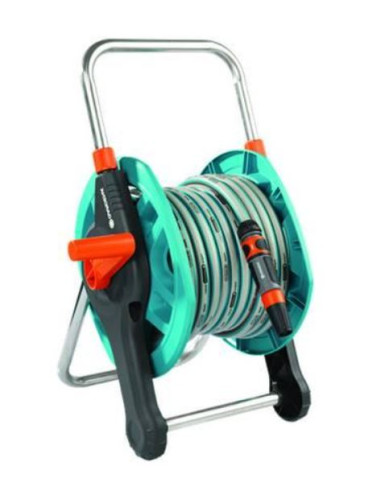ingombro minimo grazie alla base d’appoggio retraibile - raccordo angolare per evitare che il tubo si schiacci - comprende mt.20 tubo standard da 1/2", n°3 raccordi rapidi (art.18215-20), n°1 raccordo acqua-stop (art.18213-20) e n°1 lancia classic - comprende componenti aggiuntivi per il raccordo al rubinetto n°1 riduttore (art.5305-20), n°1 presa rubinetto (art.18202-20) e n°1 raccordo rapido (art.18215-20) - capacità avvolgitubo 1/2" mt.45