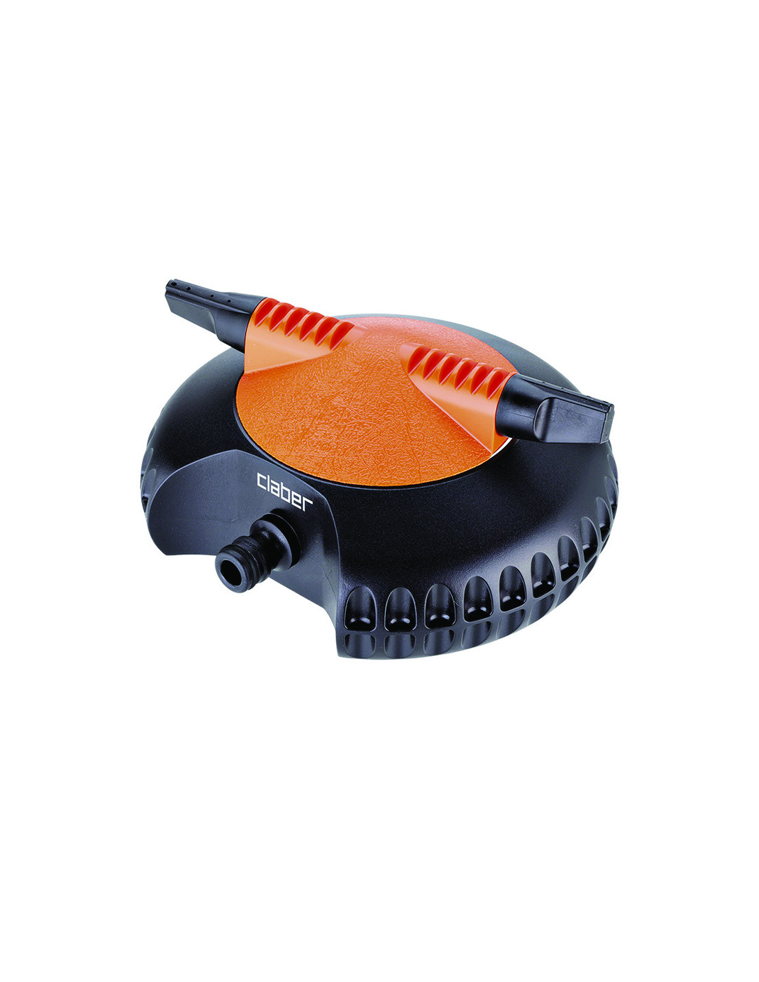 Irrigatore rotante a due braccia costruito interamente in ABS. La speciale forma arrotondata ne permette il facile trascinamento sul prato. Ugelli orientabili per ottimizzare il rendimento anche a bassa pressione. Bagna aree circolari con pioggia leggera.