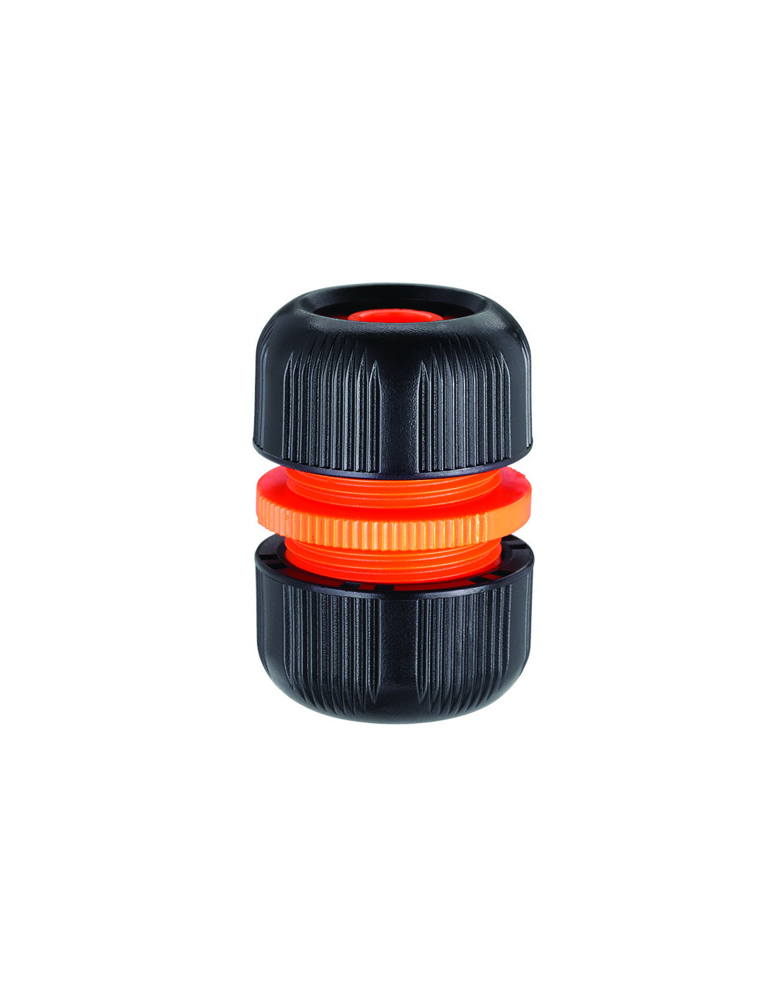 Raccordo riparatore per tubo flessibile. Salva il tubo danneggiato. Unisce i due spezzoni ottenuti tagliando il tubo nel punto della perdita d’acqua.