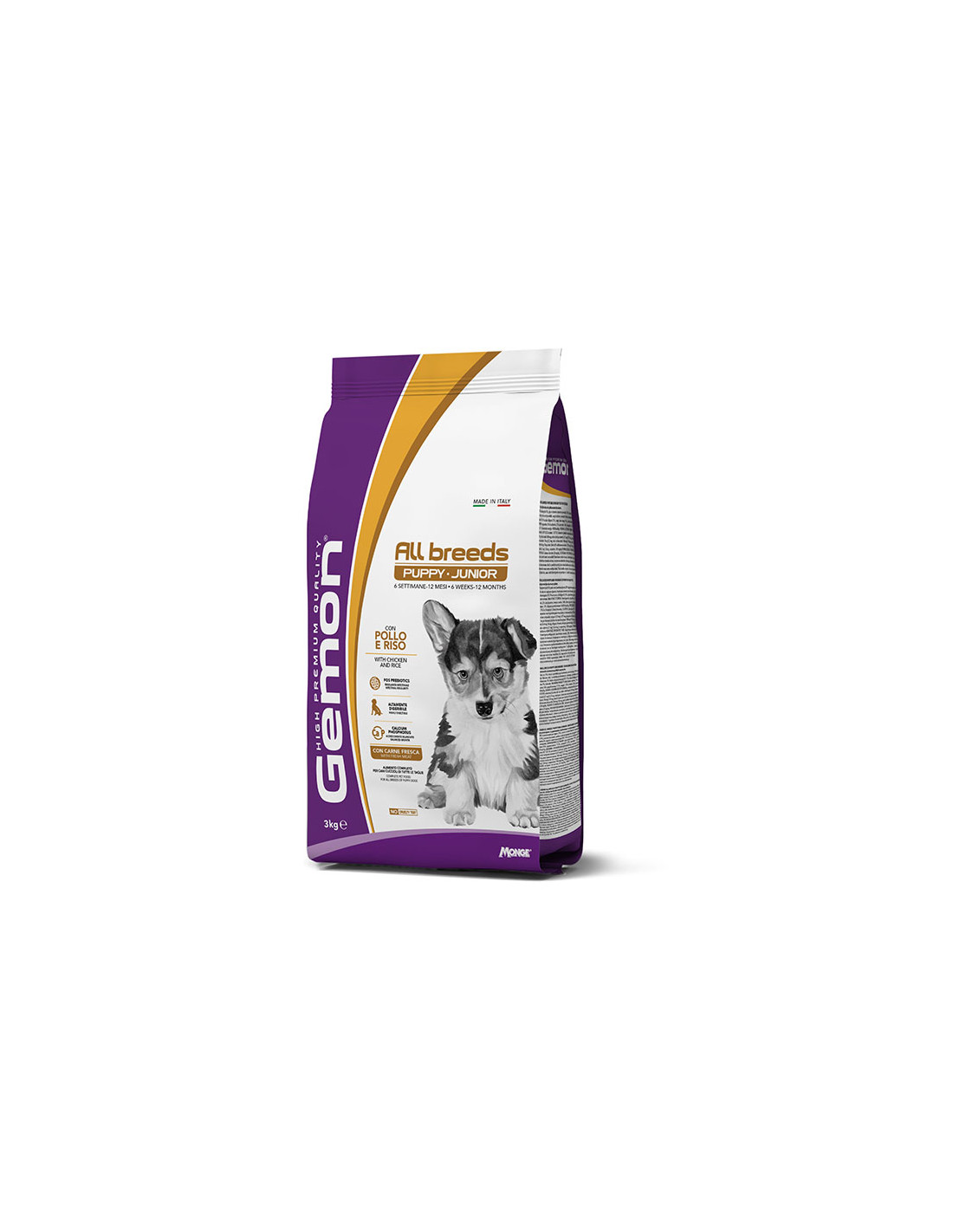 Alimento completo con pollo e riso studiato per l’alimentazione quotidiana di cuccioli di taglia media da 6 settimane a 12 mesi di età.
