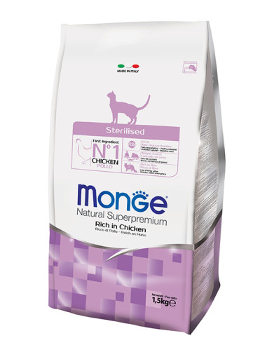 I croccantini Monge Natural Superpremium Sterilised sono un alimento completo per gatti adulti sterilizzati.