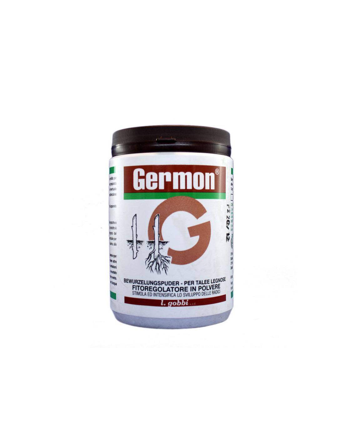 GERMON® Bewurzelungspuder per talee legnose è un fitoregolatore in polvere, a base di un derivato amidico dell’acido alfa naftilacetico, appositamente studiato per stimolare e favorire un’abbondante ed uniforme emissione di radici nelle talee legnose e semi legnose. Il prodotto per la natura e concentrazione di principio attivo contenuto si è dimostrato essere efficace sulla maggior parte delle talee di tipo legnoso e semi legnoso mentre per la sua formulazione in polvere risulta essere pratico sia per applicazioni di tipo professionale che hobbistico.